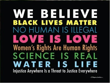There is a line in those ubiquitous "We Believe" signs that says "Water is Life" and I always wondered what they were getting at with that. Is there some perceived argument that water is not necessary for life? Who is saying that? That kind of gets to my problem with those signs in general - they are nothing but a list of tautologies that merely state limited truths as if they are resistance. Speaking truth can be resistance in this world of lies, don't get me wrong, but these signs state limited truths as if the larger truth which encompasses them is false. For example, they proclaim "No Human is Illegal" (of course no human is illegal, but law is real (just like science!) and people break it); and "Women's Rights are Human Rights" (of course they are, since women are human beings, but then again, so are the unborn, and we seem to have pitted women's rights against the rights of the unborn).